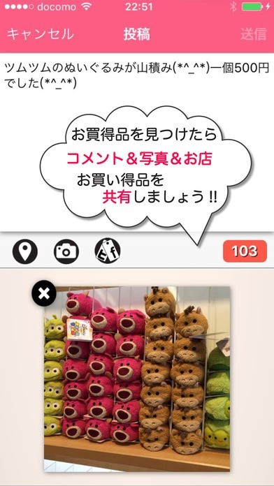 「ポンポンセール!」では、現在地からお買い得品をみつける機能などが充実しています。GPSとの連動により、近隣店舗のお得情報を素早く検索。リアルタイムで情報を表示してくれるため、開催中のセールも逃さずチェックすることができるでしょう。マップ機能も用意されており、店舗の位置や住所も確認可能。行ったことのないお店はルートを確認して出発できるのも便利です。お買い得品情報を共有する機能が充実しているのも、このツールならではの嬉しい特徴。お得な商品を発見したら、ツールからカメラを起動して撮影し、他のユーザーへ共有が行えます。皆で情報をシェアすることで、よりお得に商品をゲットしてみてはいかがでしょうか。
