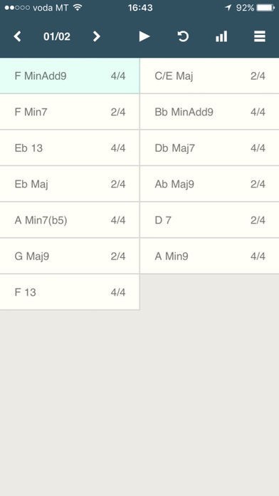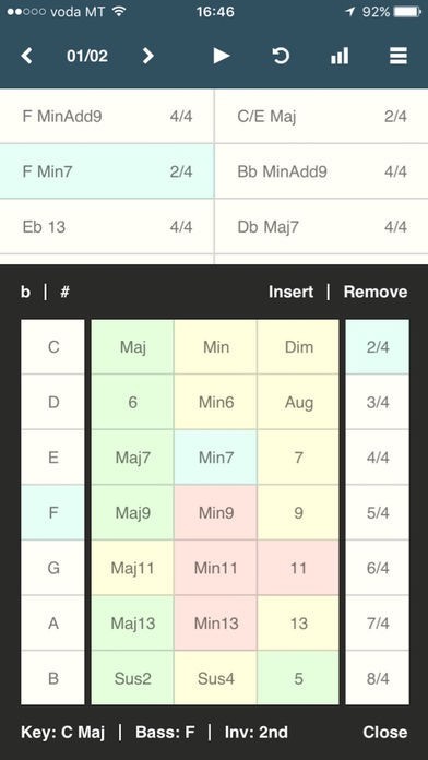 App Storeより引用Chordbot is a songwriting tool / electronic backup band that lets you create and play complex chord progressions in different arrangements easily. Just add some chords, select a comping style and hit play.