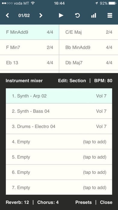 Use it for songwriting experiments, to create backing tracks for practicing solos, or just for fun. Easily create arrangements and mixes by selecting from hundreds of piano, guitar, synth, bass and drum tracks.