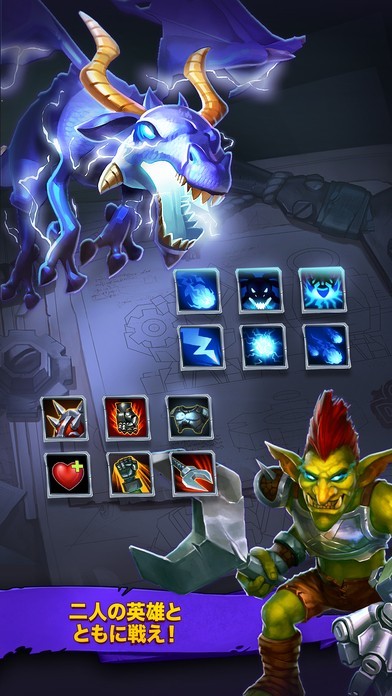・頼りになるヒーローが多数登場、力のゴブリン、力のフォックス、ネクロマンサーにドラゴン・・・あれ?みんな肉体派ばかりだけど気にするナ!ヒーローのレベルをあげて強力な必殺技を繰り出そう!