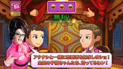 App Storeより引用いらっしゃい、子猫ちゃんたち!アタクシと一緒に出会い仲介会社を作って愛に飢えた人達を救うのよン!