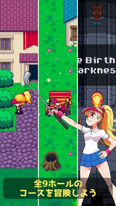 モンスターに襲われたゴルフ場を救うため、ゴルフをプレイしながらRPGも楽しめる1つで2つのゲームが遊べるゲームアプリです。ゴルフコースは9コースあり、優秀な成績を収めてモンスターのボスと戦おう。