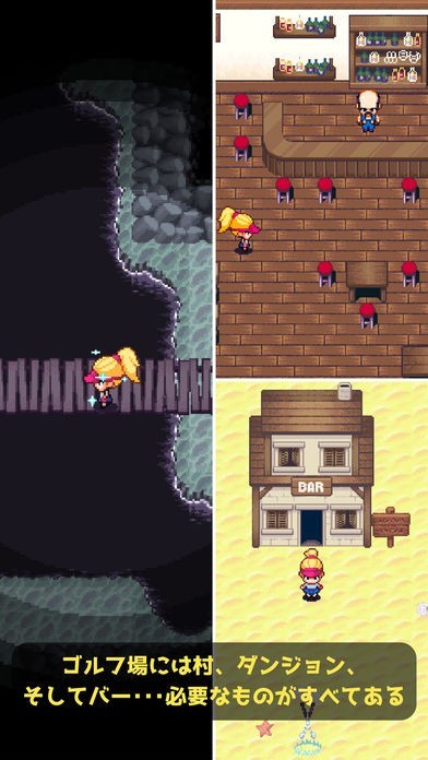 バーや商店、ダンジョンやゴルフの打ちっぱなしなど、RPGの世界も楽しめ