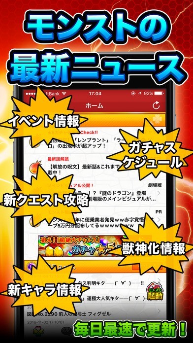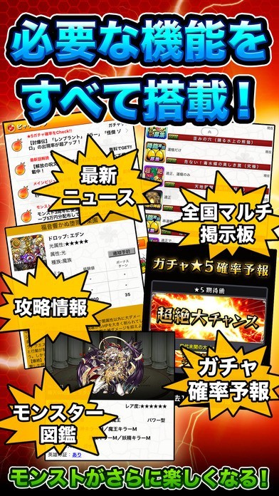 当アプリは、モンスターストライクの攻略・イベント情報、マルチプレイ相手を探すマルチ募集掲示板、便利なモンスター図鑑や星5キャラガチャ確率予報をお届けするモンストファン必見の攻略アプリです!