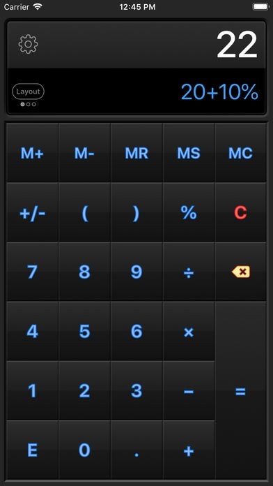 通常の電卓は1行のディスプレイなので、計算式と結果を同時に見ることができなくても、このアプリでは2行で同時に見れて、計算式もパーセントを直感的に計算できるので普段から使える実用性の高いアプリです。