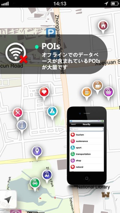 観光やビジネスで初めてのシンガポール。どこに行ったら良いか全然分からないので心配ですよね。そんな時に役に立つアプリが「シンガポール地図」です。自分の居場所を表示し、目的地まで画面と音声で案内してくれるナビゲーションアプリ。シンガポール全土の道路と地下鉄の情報を日本語だけでなく、シンガポールの案内表示に多い英語と現地の言語で分かりやすく案内してくれます。また、徒歩以外にも、タクシーや自転車などの速度表示もしてくれるので、目的地までの所要時間の目安にもなります。地下鉄の乗り換えや観光施設、現在地周辺のショップなどもアイコン表示で、外国語が苦手な方でもひと目で分かるシステムです。