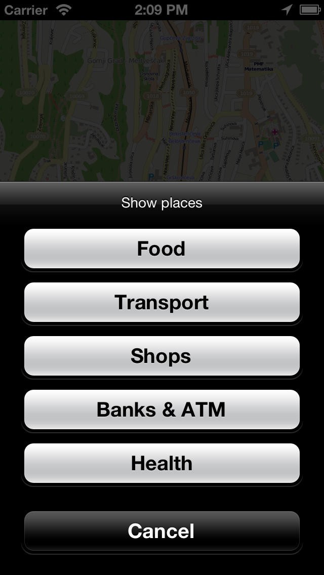 •マップエリアを選択することで、興味のあるあなた点(公園、カフェ、銀行および多く)に最も近いを見つけるためには、マップ内の任意の点の周りに検索することができます