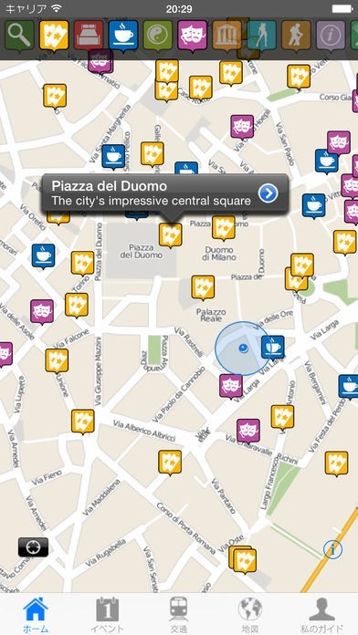 ミラノ市内の各種イベントや観光地、マップなどがまとめてチェックできます。海外では通信量が高くつきますが、オフライン使用OKなので旅行中に活躍するでしょう。スマホ1つがガイド本の変わりになります。