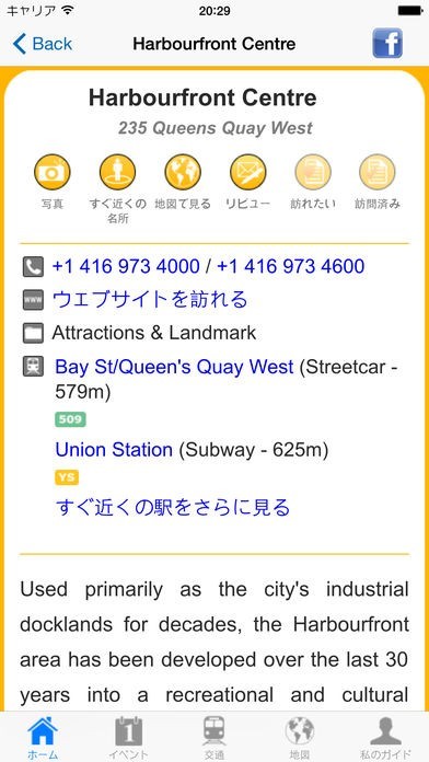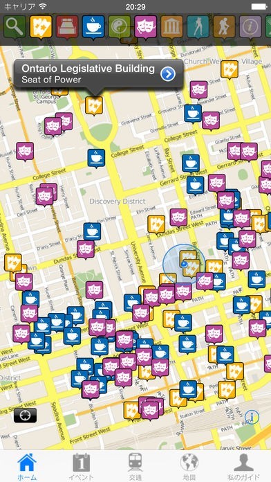 オフラインでほとんどの機能を使えるようにデザインされているこのアプリは、実際にトロントを旅行する際に通信料金を気にせず利用することができるのが特徴です。ネット接続時には収録されているデータが更新されるため、最新の観光情報を手に入れることもできます。