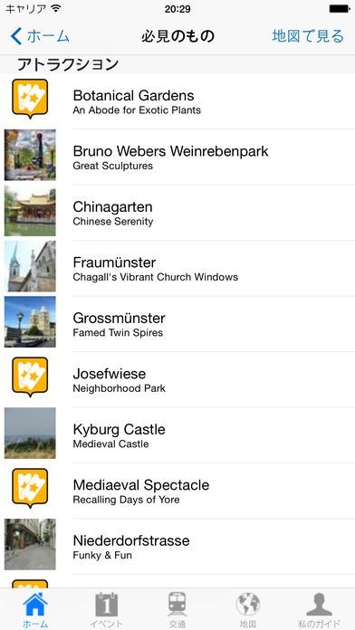 われわれのガイドは、専門的に書かれており、大量のこの都市が提供できるすべてのことについての情報が載っています。 あなたの装置のロケーションサービスで、いつでもあなたの周りにある名所を見ることができます。