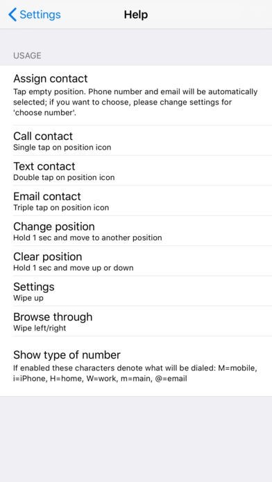 This app goes beyond easy calling: with a single tap you can call, with a double tap you can write a text message and with a triple tap you can write an email to the favorite contact! You can also change positions of assigned contacts or simply wipe them out of the screen for removal from the assignment in the app.