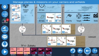 「Carrier Battles 4」には40を超える航空機・艦船ユニットが搭載されており、使い方も多岐に渡ります。戦闘機を出撃させて、敵の戦艦を沈める、といった戦術を採用することも可能です。