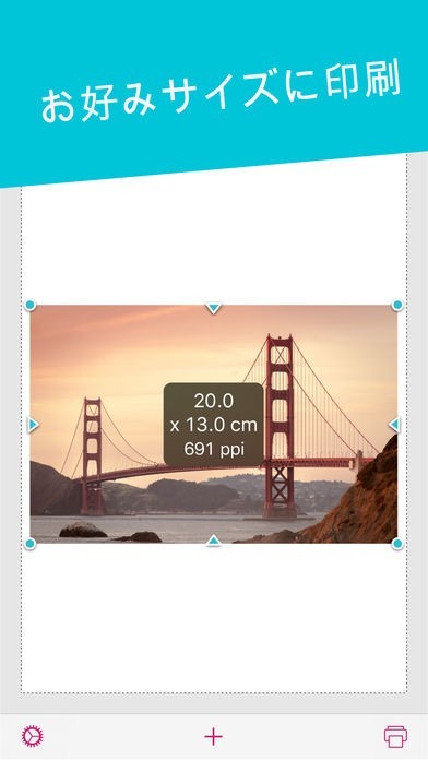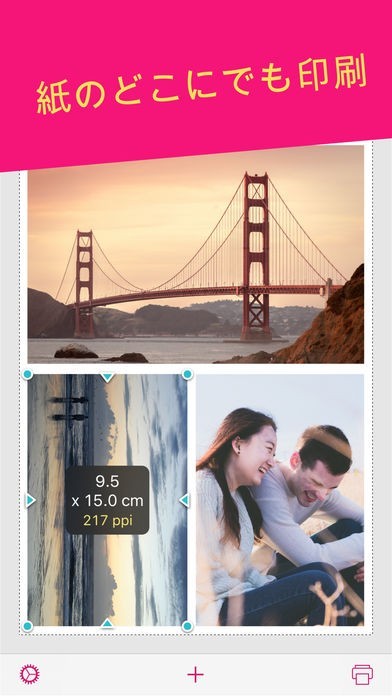 簡単手軽なタッチ操作で、画像の移動や、サイズ変更ができ、切り取りや回転機能まで搭載されているので、紙の好きな位置に画像を思いのままに配置して、自由に印刷できるようになります。