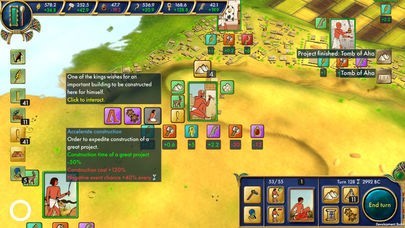 Discover the world of the Old Kingdom: exploit new lands, send expeditions to different places, and meet different cultures. Use every opportunity to learn about your surroundings and to expand Egypt's borders.