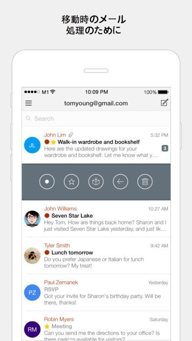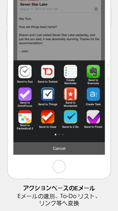 App Storeより引用Dispatch を使うと、たとえ移動中であってもメールに正確に反応できます。そして、メールの内容に応じた適切なアクションをとることができます。