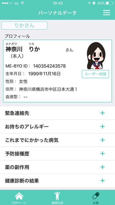 「マイME-BYOカルテ」は、神奈川県の監修によって作られた健康管理を行うことができるアプリになります。歩いた距離や歩数などを記録することができるだけでなく、薬局などでもらった薬についているQRコードをスキャンすることで薬のデータを記録することができたり、神奈川県から健康に関するお知らせが配信されたりします。