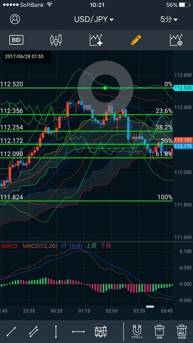 トレンドラインの描画と組み合わせ、相場のトレンドをより詳細に見極めることができます。
