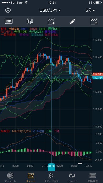定番の移動平均線やボリンジャーバンドをはじめ、MACD・RSIや一目均衡表などの人気のテクニカルに対応。さらにはスパンモデル・スーパーボリンジャーバンドなどの本格的なテクニカルも使用可能です。