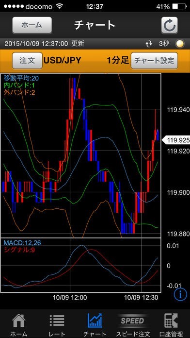 豊富なテクニカル指標を使って最新のリアルタイムチャートを見ながらワンタッチでスピード注文!