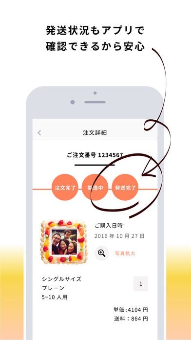 Push通知機能を使い、ケーキの配送・到着情報を知れる