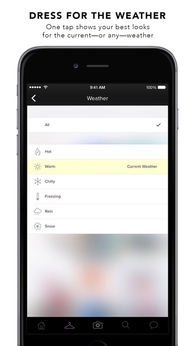 ● Instantly see your best outfits for the current weather. And if you have iOS 8, you can wake up to a notification that gives you the weather and your best looks for the day’s conditions.