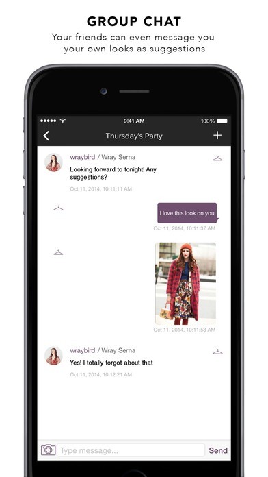 ● Chat about your looks with friends and get style advice. Send looks to friends and get feedback. And, for the first time, your friends can message you back your own looks as suggestions. Ask “What should I wear tonight?”, and see what they say.