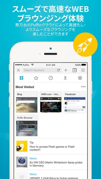 Flashの動画やゲームをやりたいと思った場合、選択肢は限られています。高速化とプライバシー保護の機能がしっかりした「Puffin」なら快適にネットサーフィンを行えます。