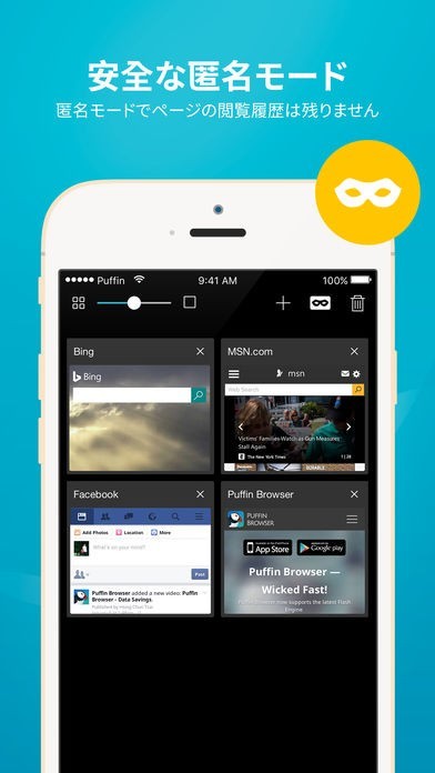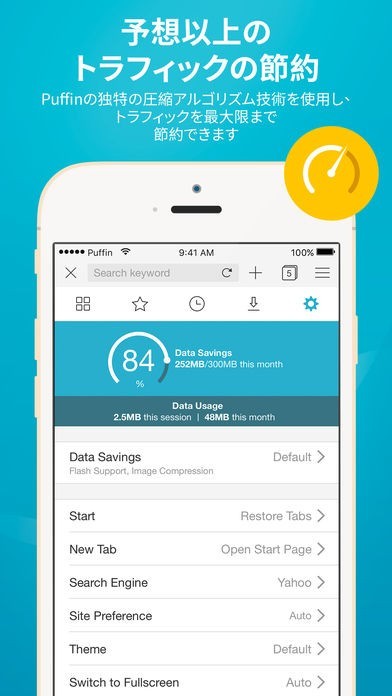 気になる通信量を節約してくれる機能が嬉しい「Puffin」です。あまり神経質にならずにブラウジングを楽しめます。セキュリティ面でも通信はすべて暗号化なので無料Wi-Fi利用時も神経質にならずにOKです。