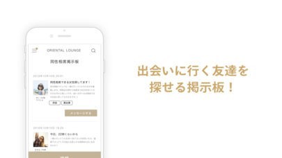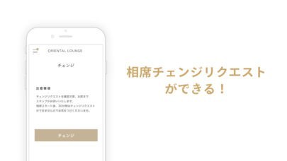 オリエンタルラウンジに一緒に行く同性の友達をスムーズに探せるだけでなく、店舗の混雑状況の確認や、スマホからの注文機能など、オリエンタルの全店舗で利用できるさまざまなサービスを使用できます。