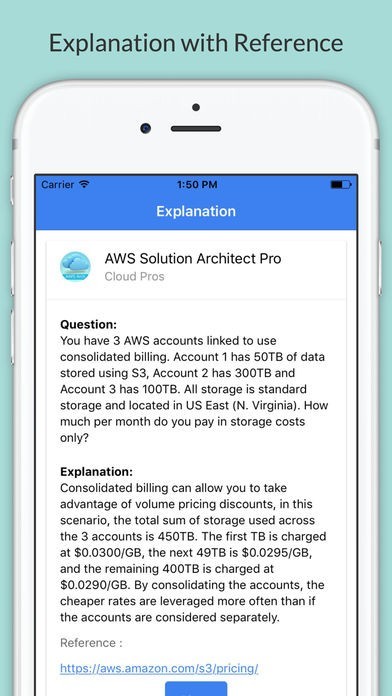 This app lets you practice questions for the AWS Certified Solution Architect- PROFESSIONAL Level exam.