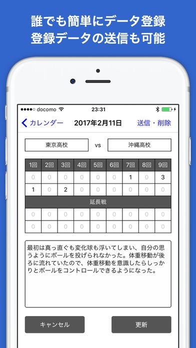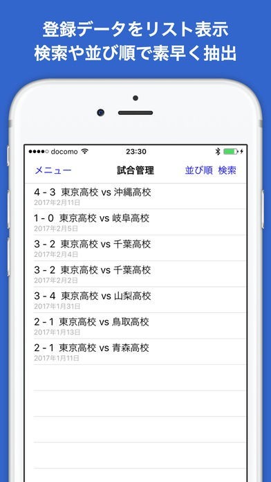 試合の結果を登録しておけるから過去に対戦した事のあるチームが相手の時に以前に登録しておいたデータを直ぐに検索して確認する事ができるので対策を立てることができます。