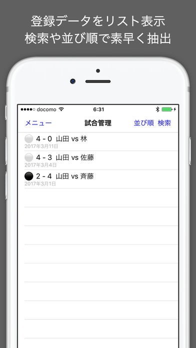 ソフトテニスに特化した選択式なので文字入力の手間なくメモをとることができる