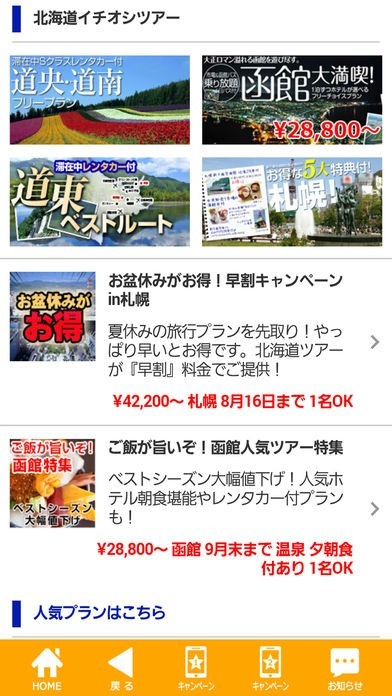 App Storeより引用往復航空券よりもお得? 「航空券+様々なタイプの宿」がセットのフリープランor観光付きの国内旅行・国内ツアーが予約できます。
