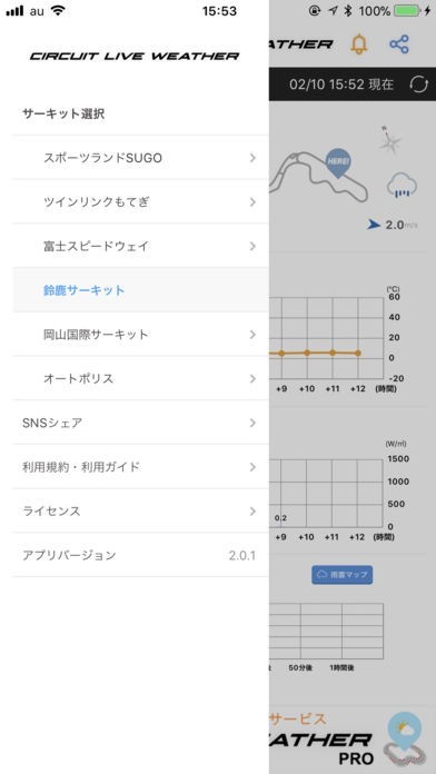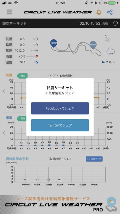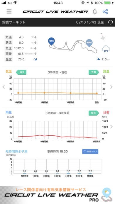 訪問予定のサーキットの天気確認にも最適!リアルタイムでの天候情報がキャッチできる!