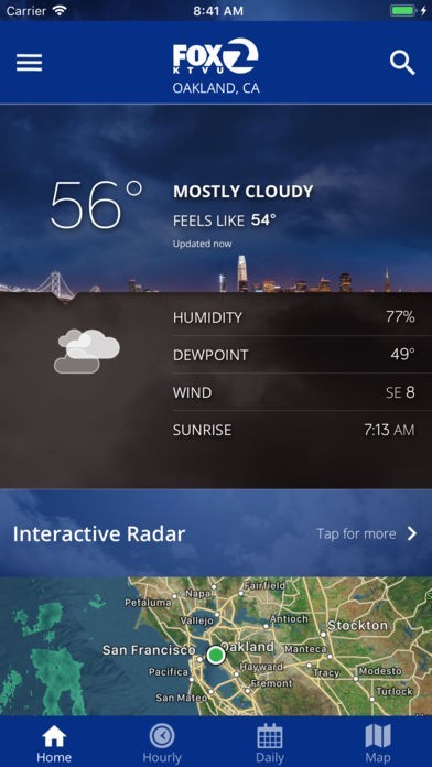 App Storeより引用Track your local Bay Area forecast with a brand new app from the KTVU FOX 2 Weather team. From San Francisco to San Jose, Napa to Oakland and everywhere in between, get radar, traffic, and 7-day weather information on our newly designed, user-friendly interface. It’s like having the power of the KTVU FOX 2 Weather Team in the palm of your hand.