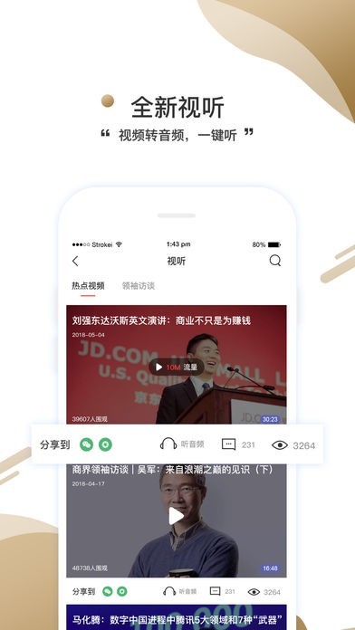 在资讯方面,“商界”App整合了商界领袖俱乐部会员服务,形成了集《商界》杂志、大咖微讲堂、《商界问商界:商界明星访谈录》、《商界领袖每周内参》为一体的,文字、视频、音频立体化的资讯矩阵。