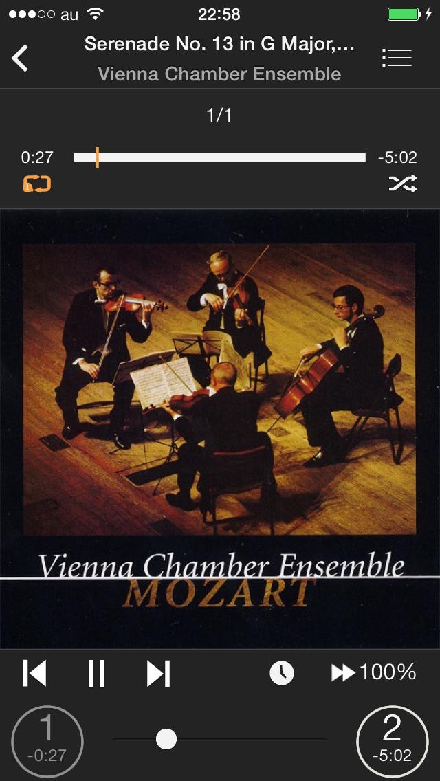 スマートフォンの中に入っている曲の中から2曲同時に聴くことができる!
