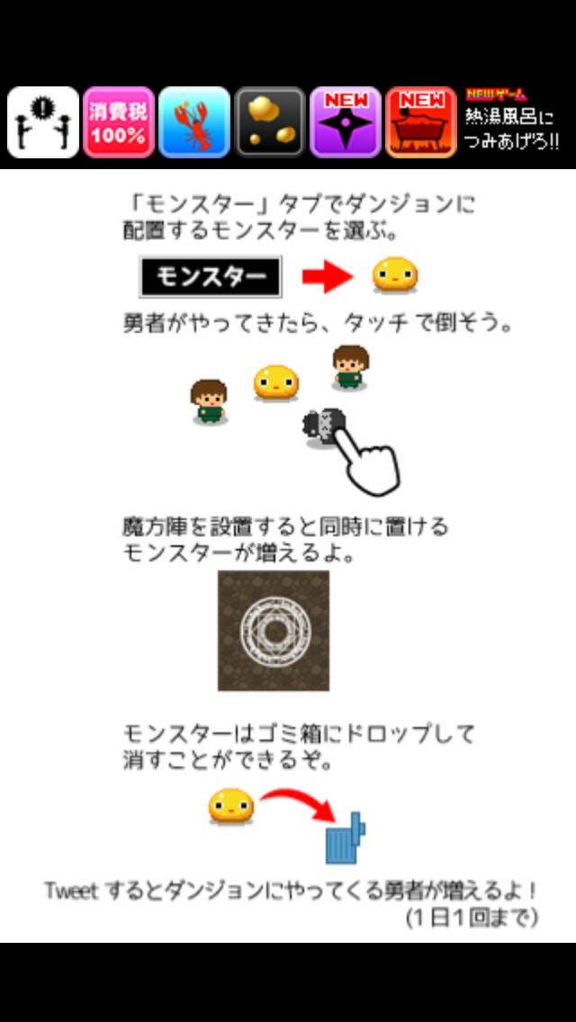 通常のRPGはスキルアップの為に、モンスターを探しに洞窟に行くのですが、このゲームはモンスター目線で勇者を捕まえるのが目的です。なので、新鮮な気持ちでプレイすることが出来ます。