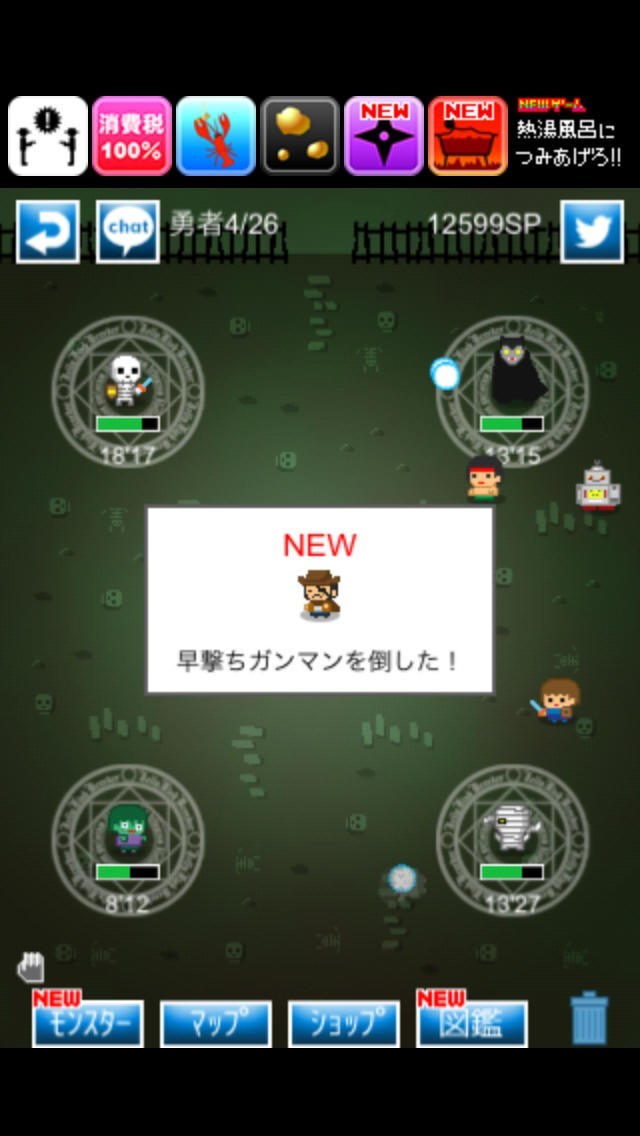 洞窟などで捕まえた勇者を、図鑑にする事が出来ます。放置していると勇者が自然と集まってくるので、モンスターはそれを捕まえます。たくさんの勇者をコンプリートし楽しむことが出来ます。