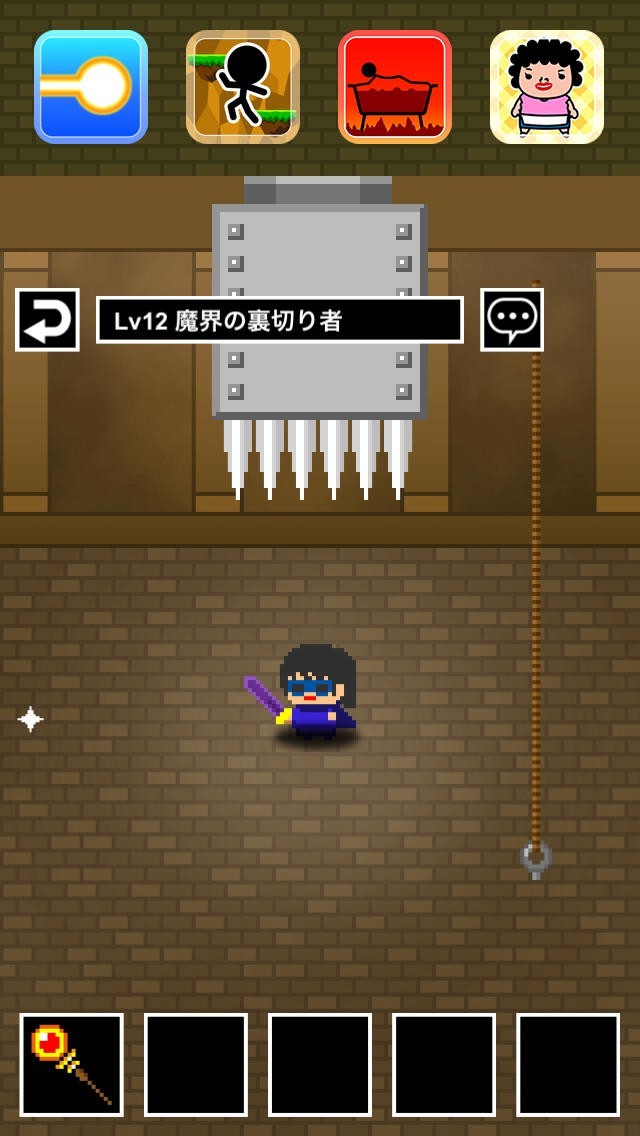 このゲームは魔王の城に来た勇者がおり、その場はさまざまなアイテムが設置されているシチュエーションとなります。方法を試して最終的には勇者を倒す方法を探し当てましょう。