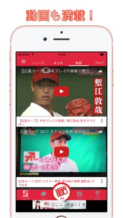 スポーツ紙の情報のみならずまとめサイトや選手ブログに載っているカープ情報が一覧で表示され、気になるニュースを選んで読めます。選手情報も充実していて見ごたえ有りです!カープファンなら網羅したいカープ情報がアプリ一つにまとまっていて便利です。