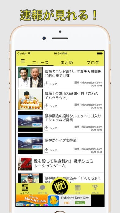 阪神タイガースのニュースに特化したアプリになっております。最新のニュースはもちろんのことで、選手情報や今後の対戦日程も把握することができるので便利です。阪神の順位の他にも、パリーグの順位を見ることも可能です。実況機能が搭載されており、試合中はファン同士がアプリを通して交流できるので一緒に応援している気分になれます。