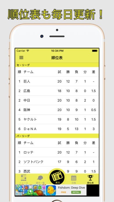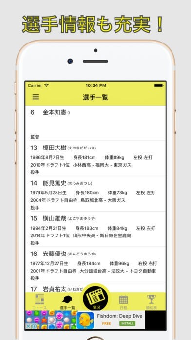 順位表から選手情報まで幅広く手に入れられる!