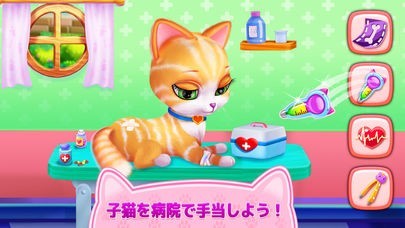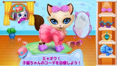 バリエーション豊かなお洋服やアクセサリーの中から自分の子猫に似合うものを選んで、人間のようにスタイリングしてあげることもでき、着せ替えゲームとしても楽しめます。