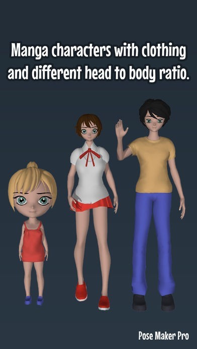 With lite version you can pose human male and manga female model. You can unlock more features by watching an ad (morphing and manga facial expressions). Unlock Pro version for a small fee.