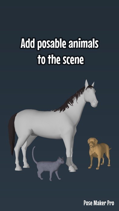 Now you can add posable animals to the scene. App comes with horse, dog and cat models.
