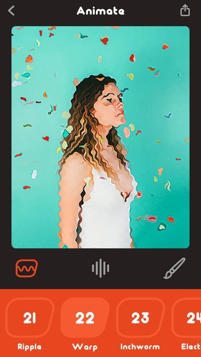スマートフォンで静止画をアニメーションのように動かすことができるアプリとなっていて、用意されている24種類のエフェクトを使って写真を動かすことが可能になります。
