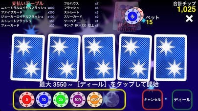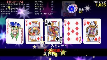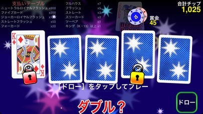 トランプゲームのアプリはたくさんありますが、画面が見やすく、操作も感覚的でわかりやすいので、飽きずに遊べると思います。ダブルボーナスチャンスにはカジノゲームらしいドキドキもあり、楽しめます。