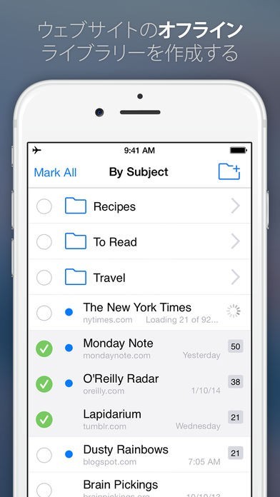 保存したサイトはライブラリ機能でフォルダなどを作成してわかりやすくまとめることが出来ます。使い勝手が非常によくオフラインで使用することが出来るアプリなので便利です。