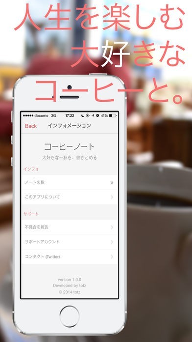 「コーヒーノート - 大好きな一杯を、書きとめる - 無料アプリ」スペック・仕様
